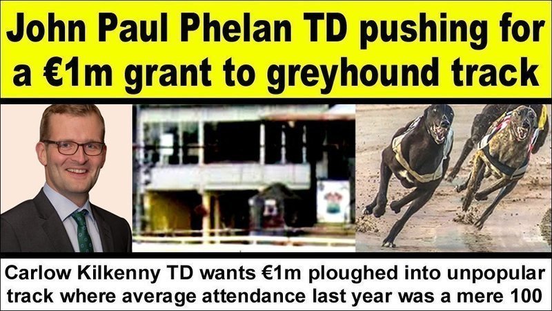 Fine Gael TD John Paul Phelan is the latest politician to push for a massive ONE MILLION EURO grant to an unpopular greyhound track where dogs suffer and die.