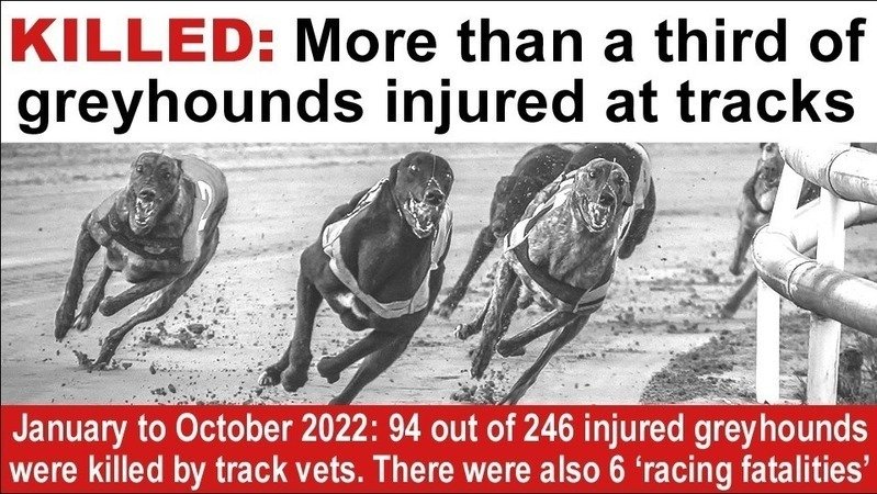 The January to October 2022 figures bring to 3,009 the number of greyhounds injured and 1,038 the number killed in racing at Irish tracks since 2014.