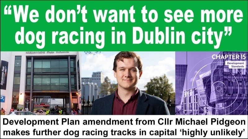 Thanks to the Dublin South West Inner City Councillor's submission, the “Dublin City Development Plan 2022 – 2028” makes it clear that there will be a "presumption against the development of further dog racing tracks in the city".