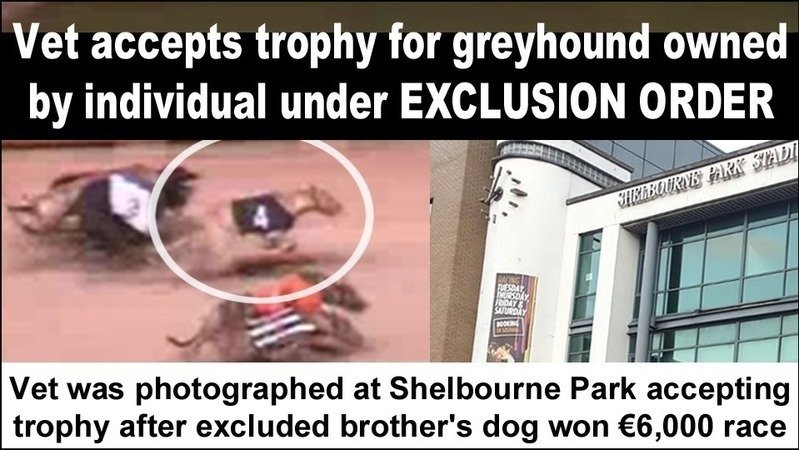 A vet has accepted a trophy for a winning greyhound owned by an individual who is the subject of a Greyhound Racing Ireland EXCLUSION ORDER.