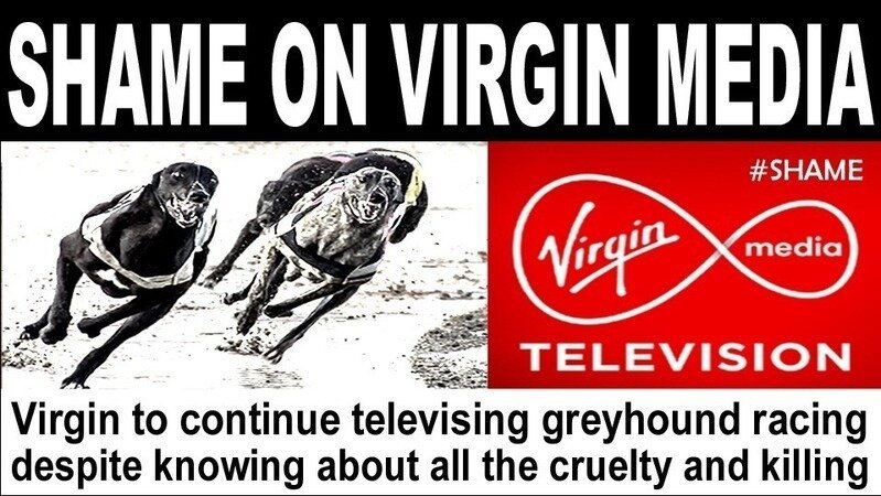 Despite knowing about all the cruelty and killing in greyhound racing, Virgin Media is to again give coverage to the activity this month and next.