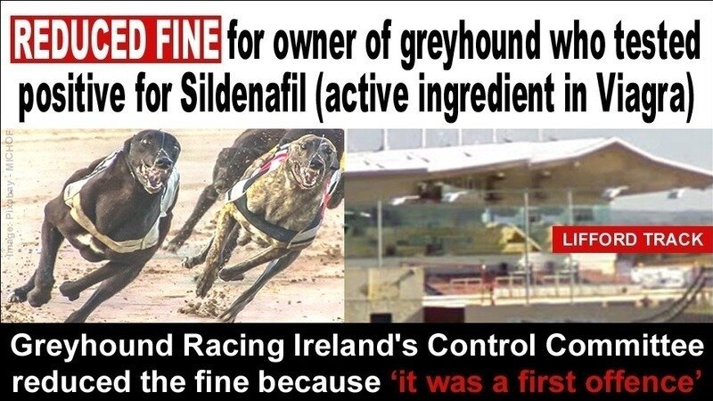 Greyhound Racing Ireland's Control Committee has REDUCED a fine for the owner of a greyhound who tested positive for Sildenafil (active ingredient in Viagra). The committee's ridiculous reason for reducing the fine: “it was a first offence”.