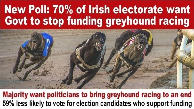 70% of the Irish electorate oppose government funding to cruel, dog-killing greyhound racing, a new opinion poll has found.