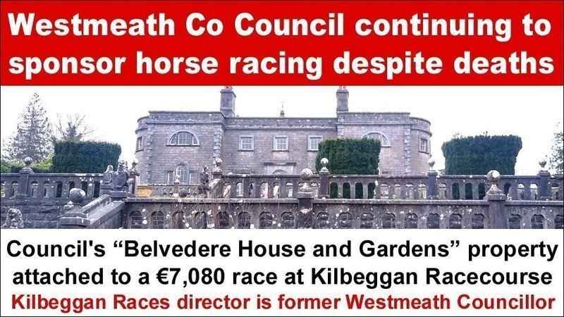 In an appeal to Westmeath County Council to stop the sponsorship, ICABS stated: “It's unacceptable that Kilbeggan Racecourse is getting money from the Council's limited funds - particularly when it's at the expense of community groups crying out for support. It's an ill-judged decision by Westmeath County Council to align Belvedere House - one of Westmeath's top tourist attractions - with horse racing at a time when more and more people are turning away from the activity following scandals and revelations about cruelty and killing.”