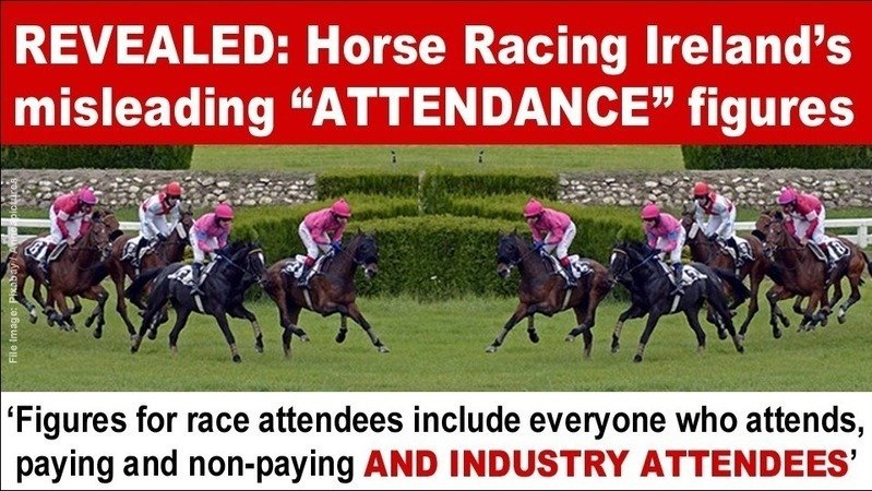The admission makes it clear that horse racing events attract substantially less people than Horse Racing Ireland’s wholly misleading statistics suggest.