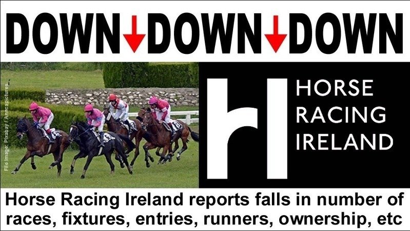 Horse Racing Ireland has reported falls in the number of races, fixtures, entries, winners, horses in training and horse ownership.