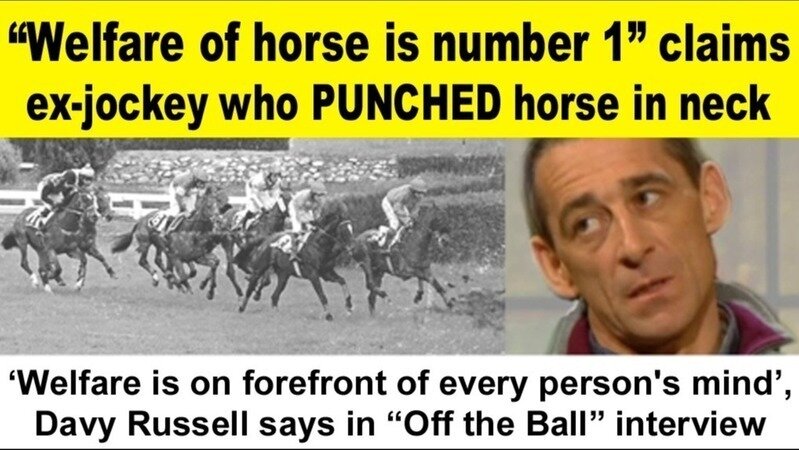 Davy Russell was caught on video in 2017 punching a horse in the neck before the start of a race at Tramore racecourse https://www.irishtimes.com/sport/racing/davy-russell-gets-four-day-ban-for-striking-a-horse-1.3210076