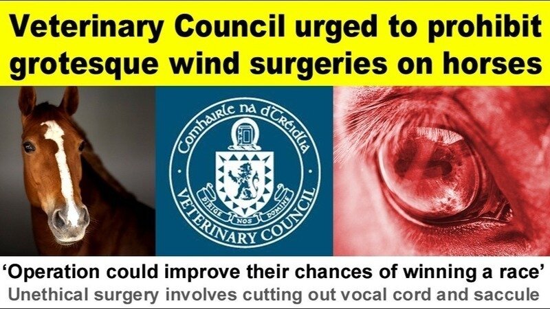 The Veterinary Council of Ireland is being urged to prohibit vets from performing grotesque wind surgeries on horses.