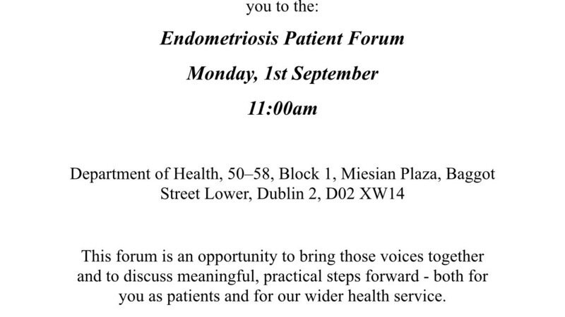 My invitation to the Minister of Healths Endometriosis Forum arrived by email today for Monday September 1st in the Department of Health in Dublin.