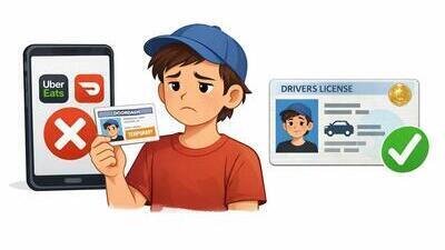 Most delivery services require their drivers to submit a photograph of their driver's license. Unfortunately, despite having the orange sticker, my permit still reads "Instruction Permit" at the top, leading these applications to automatically deny me. Simply put, the sticker alone is not enough to validate my eligibility, unfairly blocking access to crucial work opportunities.