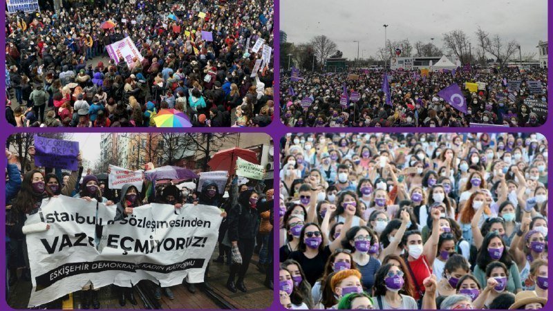 Kadınların hayatları için güvence oluşturan İstanbul Sözleşmesi'ni, bir gece yarısı kadınları tanımadan feshettiler. Sözleşme'nin feshini tanımıyoruz. Birçok yerde sokaklardaydık, sokaklarda olmaya devam edeceğiz!
