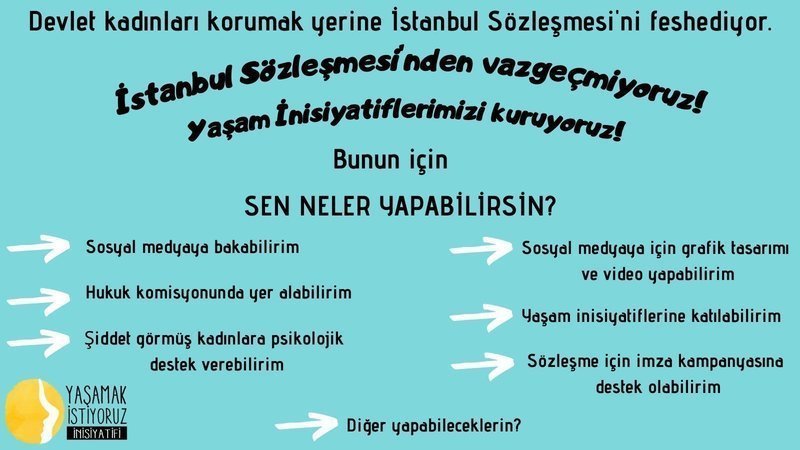 İstanbul Sözleşmesi'nden vazgeçmemek için yaşam inisiyatifleri kuruyoruz. İnisiyatiflerimizde senin de yapabileceğin birçok şey var!