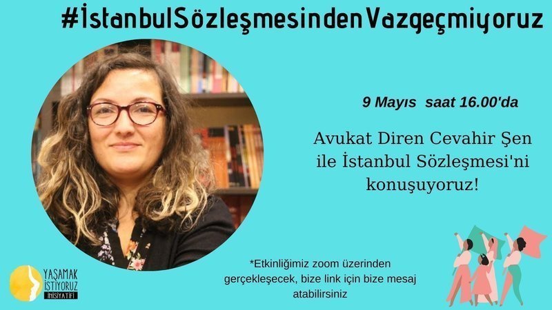 AKP iktidarının feshetmeye çalıştığı İstanbul Sözleşmesi'nin hayatlarımıza olan kazanımlarını, Avukat Diren Cevahir Şen ile 9 Mayıs 2021 tarihinde saat 16.00'da konuşuyoruz. Sözleşme için mücadele ederken, haklarımızın bilincinde olmanın önemli olduğunu da unutmayarak, etkinliğimize katılmak için bize aşağıdaki sosyal medya hesaplarımız üzerinden mesaj atabilirsiniz.