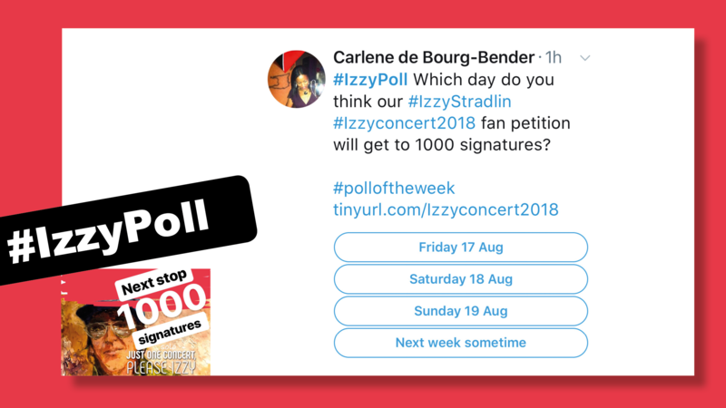 This week’s “Izzy Poll” (posted on Twitter - please search for #IzzyPoll) asks you to guess which day we’re going to hit the target 1000 signatures on this petition.