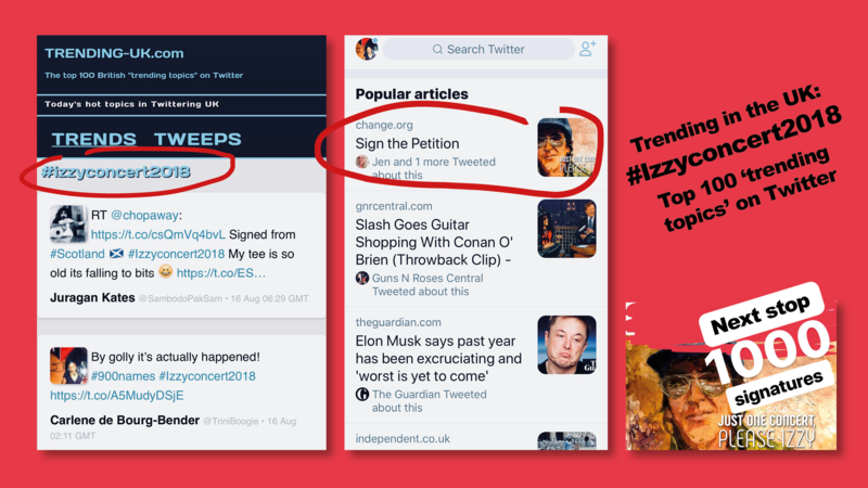 Petition updateIzzy Stradlin: Play your (solo) music live for us929 - and #Izzyconcert2018 is trending in the UK