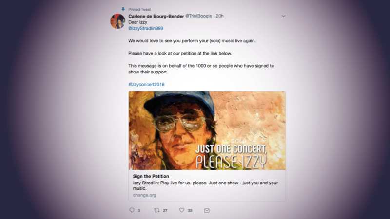 So to let you all know that, according to plan, we sent the tweet to Izzy (it's pinned to the top of my Twitter, see pic if you can read it) with the petition link, and have started sending out press releases to members of the music press. For whatever that's worth. Maybe someone in the media will retweet.