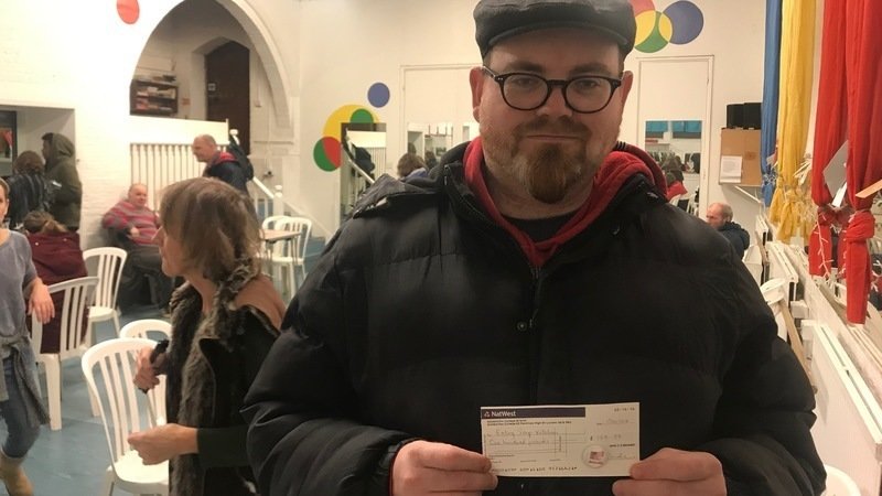 In the photo, Andrew McLeay, who runs the Ealing Soup Kitchen in West London, holds a cheque for £100 - our first instalment, collected through profits from sales of the "I signed" keepsake t-shirts, mugs, bags and pins. Andrew says that at this time of the year, cash donations go a long way to paying for things like sleeping bags for people living on the frozen streets, as well as for soup kitchen food and supplies, and phone credit so homeless people can contact their loved ones at Christmas.