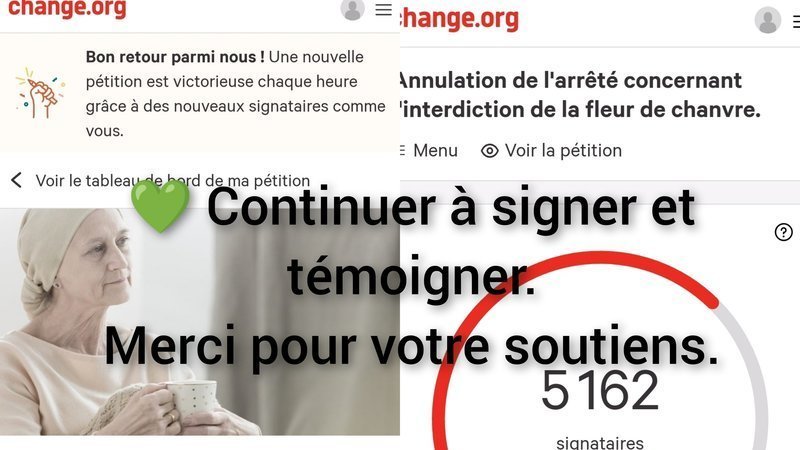 Actualización sobre la peticiónAnnulation de l'arrêté concernant l'interdiction de la fleur de chanvre.Merci à vous!