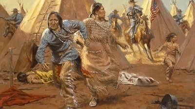 In 1864, Governor Evans invited all friendly Plains Indians to Fort Lyons, promising provisions and protection in the harsh winter months. As advised by the Fort Lyons commander, Chief Black Kettle and Chief Niwot (Left Hand) led a small band of Cheyenne and Arapaho people to Sand Creek where they planned to camp for the winter. Though promised safety, as an extra security measure, Chief Black Kettle flew an American flag and a white flag over his lodge.
