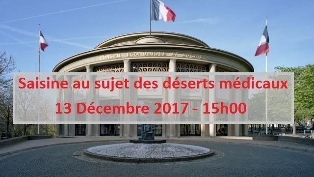 A quinze heures cet après-midi le CESE ( Conseil Economique, Social et Environnemental ) rendra son avis sur la saisine au sujet des déserts médicaux.