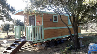 J’ai acheté en 2012, sur la commune de Cucuron (84160), un terrain agricole, à l’abandon depuis 25 ans, terrain sur lequel la SAFER n’a pas préemptée et que j’ai payé au prix du terrain de loisirs J’y ai installé une roulotte en bois en mars 2013 ; c’est ma résidence principale depuis mai 2015, date de la mise en eau par le Canal de Provence. Je suis en autonomie énergétique (panneaux photovoltaïques, eau du canal filtrée par UV) et n’ai aucune empreinte écologique (des toilettes sèches, recyclées dans le compost, emploi de produits biodégradables, eaux usées pour l’arrosage).