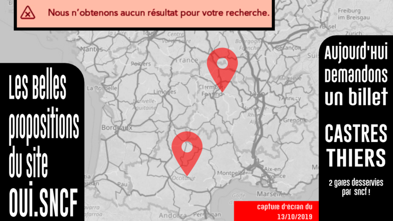Petition updatePour des billets SNCF non limités à 2 changements pour des trajets + directs et - chersAchat d’un billet de train Castres - Thiers impossible sur les sites Internet SNCF