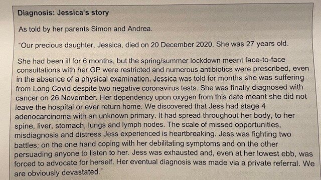 Petition updateJess's Rule - Improve the awareness and diagnosis of cancer in young adults.Jess helping to change safety in Primary Care