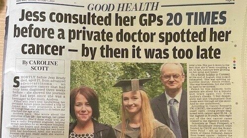 It was encouraging to see a quote from the Chair of The Royal College of General Practitioners, Professor Kamila Hawthorne, speaking encouragingly about the positive impact Jess’s Law would have in improving earlier cancer diagnosis in Primary Care.