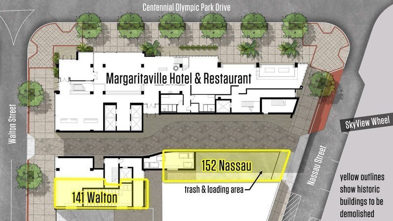 A: Yes! The area where the 152 Nassau building sits is proposed as an off-street loading and trash pick-up area. These activities can be accommodated on Nassau Street, Walton Street, or Centennial Olympic Park Drive or in the proposed through-block driveway.