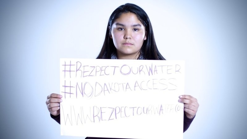 mní wakȟáŋ kiŋ hé é uŋ wígli tkápa uŋčhíŋpi. (Water is sacred, we don’t want oil.)