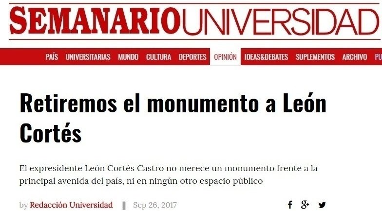 Petition updateRetiremos el monumento a León CortésArtículo del Semanario Universidad de apoyo a nuestra campaña