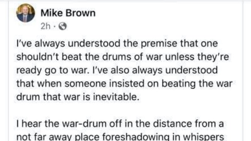 "I’ve always understood the premise that one shouldn’t beat the drums of war unless they’re ready go to war. I’ve also always understood that when someone insisted on beating the war drum that war is inevitable.