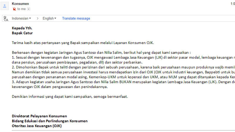 Pengumpulan dana dalam kalayak umum, untuk kepentingan yang tidak jelas seperti ini wajib untuk diwaspadai!!! Ke mana aliran dana tersebut! OJK bahkan sudah memberikan informasinya melalui EMAIL atas pertanyaan saya, bahwa Jaringan ini bukan di bawah pengawasan OJK!