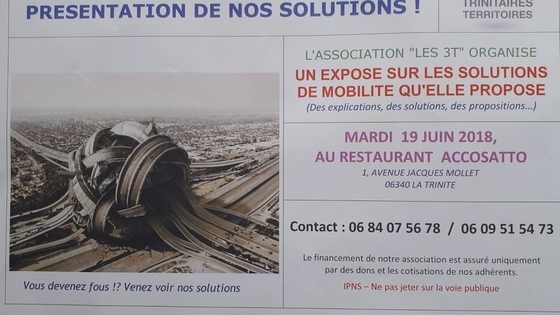L'association 3T organise une réunion publique le Mardi 19 Juin à 18h30 au restaurant Accossato à la Trinité.