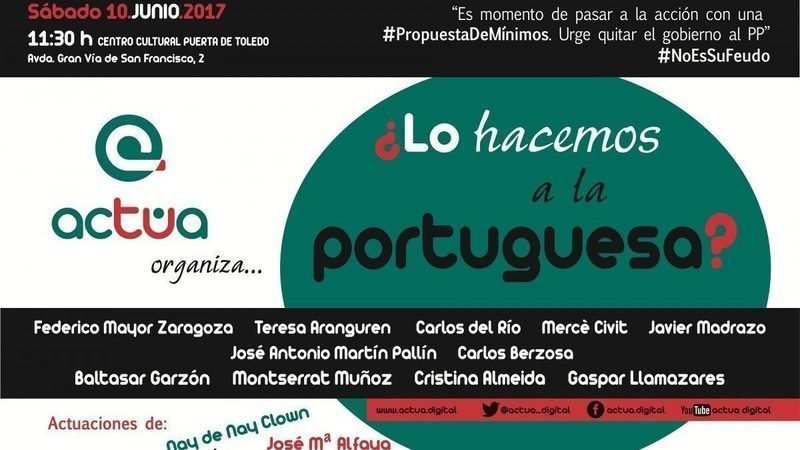 Os agradecemos de antemano la participación así como la difusión entre vuestros amigos y conocidos en redes sociales tanto de dicho acto como de la firma del manifiesto de actúa en http://actua.digital/manifiesto/