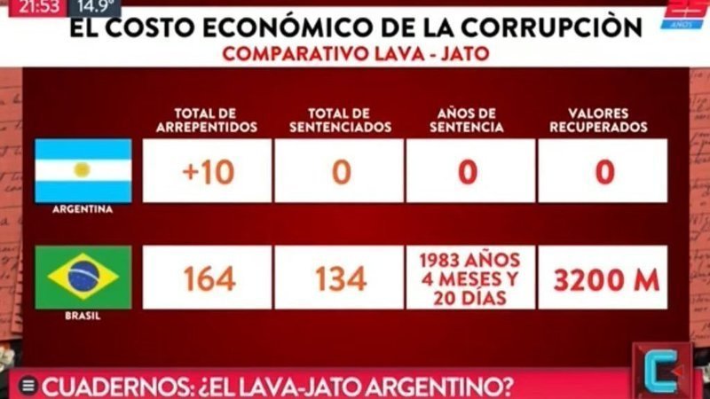 Mientras en Brasil el Lava Jato avanzó bien y rápido, en Argentina nos estamos estancando. Mirá los números en el gráfico.