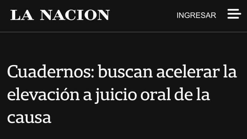 Se busca el apartamiento de Stornelli de la causa de los cuadernos. Elisa Carrió le pidió al jefe de Stornelli que lo mantenga al frente de la causa. Dijo que se buscaba apartarlo "a fin de que ciertos empresarios involucrados en la referida causa penal obtengan la aprobación de un juicio abreviado cuya sanción no sea pena de prisión, sino solamente la imposición de una multa".