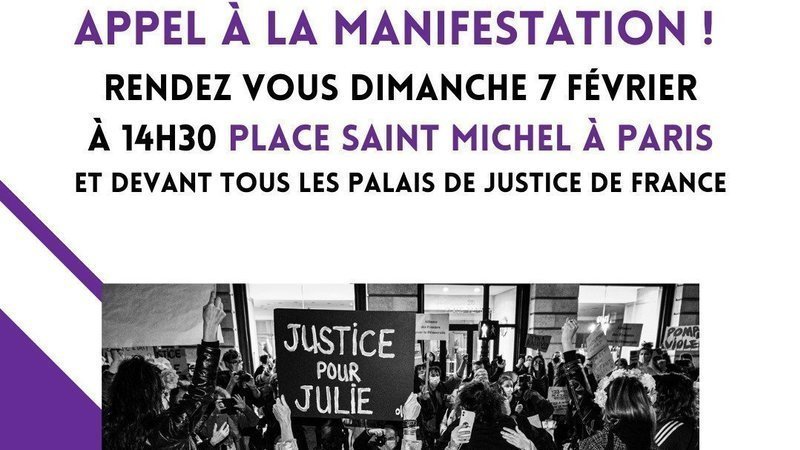 LE 07 FEVRIER, NOUS APPELONS A DE GRANDS RASSEMBLEMENTS A 14H30 DEVANT TOUS LES PALAIS DE JUSTICE DE FRANCE POUR RECLAMER QUE JUSTICE SOIT RENDUE A JULIE.