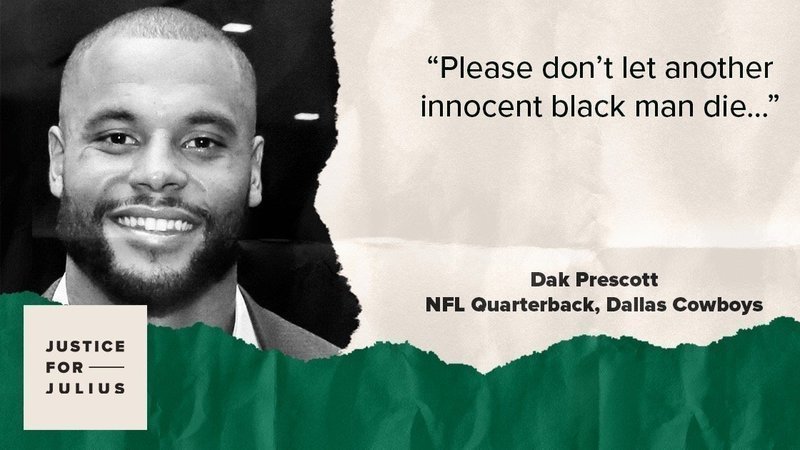 We are excited that our first such update is a piece of great news. Dallas Cowboys Quarterback Dak Prescott has weighed in with an emotional, heartfelt letter to Gov. Kevin Stitt asking him to commute Julius’ sentence, and TIME.com has written a great piece on Dak’s involvement.