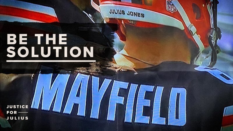 It has also included the support of several high-profile celebrities and athletes who have chosen to use their platform and fame as tools to fight injustice. The latest is Cleveland Browns Quarterback (and former University of Oklahoma sensation and Heisman trophy winner) Baker Mayfield. Baker has made the decision to wear Julius’ name on the back of his helmet this season and to use his post-game press conferences to speak out on Julius’ behalf. We want to offer our sincere thanks to him for his leadership and his fearlessness.