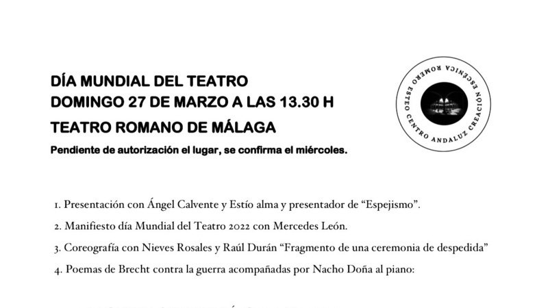 Petition updateJUNTA DE ANDALUCÍA: EL CENTRO ANDALUZ DE CREACIÓN ESCÉNICA EN EL CONVENTO DE LA TRINIDADPROGRAMA DÍA MUNDIAL DEL TEATRO