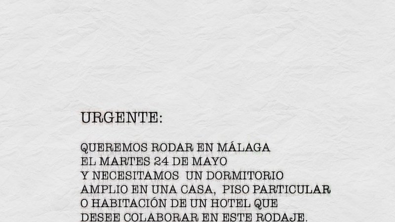 NECESITAMOS RODAR EL 24 DE MAYO EN MÁLAGA EN UN DORMITORIO ÁMPLIO DE UNA CASA, PISO PARTICULAR O HABITACIÓN DE UN HOTEL QUE DESEE COLABORAR EN ESTE RODAJE