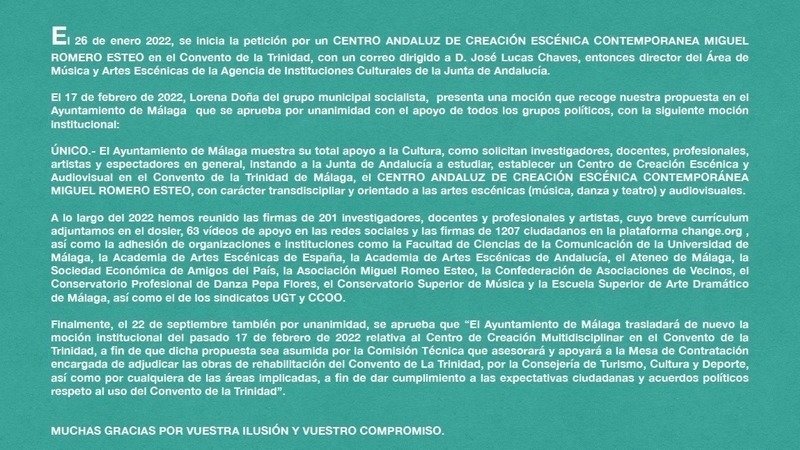 Petition updateJUNTA DE ANDALUCÍA: EL CENTRO ANDALUZ DE CREACIÓN ESCÉNICA EN EL CONVENTO DE LA TRINIDADFELIZ 2023