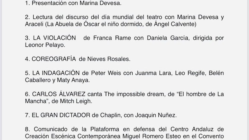 8. Comunicado de la Plataforma en defensa del Centro Andaluz de Creación Escénica Contemporánea Miguel Romero Esteo en el Convento de la Trinidad, con Juanma Lara