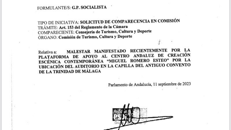 Petition updateJUNTA DE ANDALUCÍA: EL CENTRO ANDALUZ DE CREACIÓN ESCÉNICA EN EL CONVENTO DE LA TRINIDADSOLICITUD DE COMPARECENCIA EN COMISIÓN