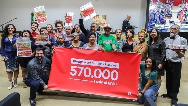 Em segundo lugar, tenho uma excelente notícia: a Campanha Nacional em Defesa do Cerrado esteve no Congresso Nacional, na quarta-feira da última semana (dia 11/09). Entregamos mais de meio milhão de assinaturas para a Câmara dos Deputados!