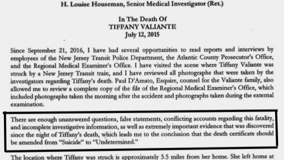 Valiante family attorney Paul D'Amato in 2017, again called upon NJ authorities to reopen the investigation that by then was being widely criticized, in Ms. Houseman report, and later by forensic pathologist Dr. Donald Jason, the former Medical Examiner of Atlantic County.