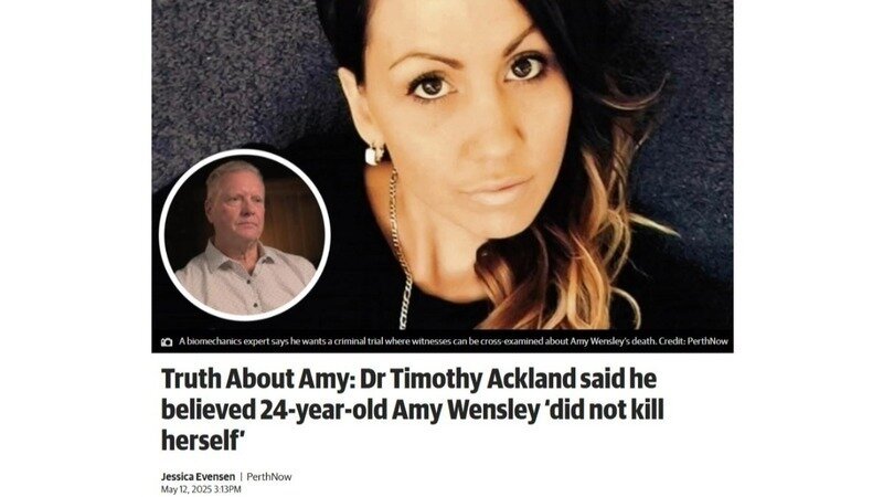 A biomechanics expert says he wants a criminal trial where witnesses can be cross-examined about Amy Wensley’s death because he is “95 per cent” certain she did not take her own life.