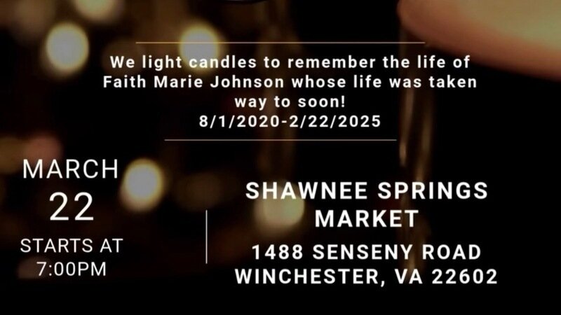 - Community Vigil: The candlelight vigil in honor of Faith will be held this Saturday, March 22nd, at 7:00 PM at Shawnee Springs Market on Senseny Road.