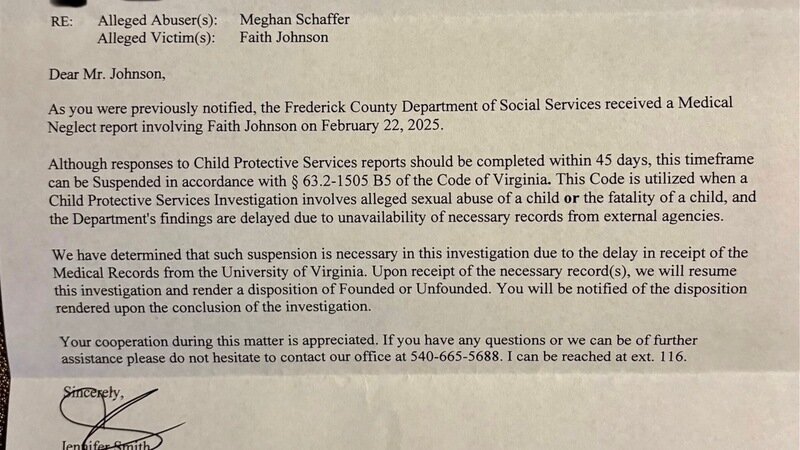 We are still pressing hard daily to get the results of the investigation into Faith's passing. The Frederick County Sheriff's Office and Child Protective Services are investigating the incident at Northwestern Regional Education Programs (NREP) where Faith's feeding tube became dislodged, and we are awaiting the autopsy results to determine her cause of death. We want to assure you that we are pushing for answers and will not rest until justice for Faith is achieved.